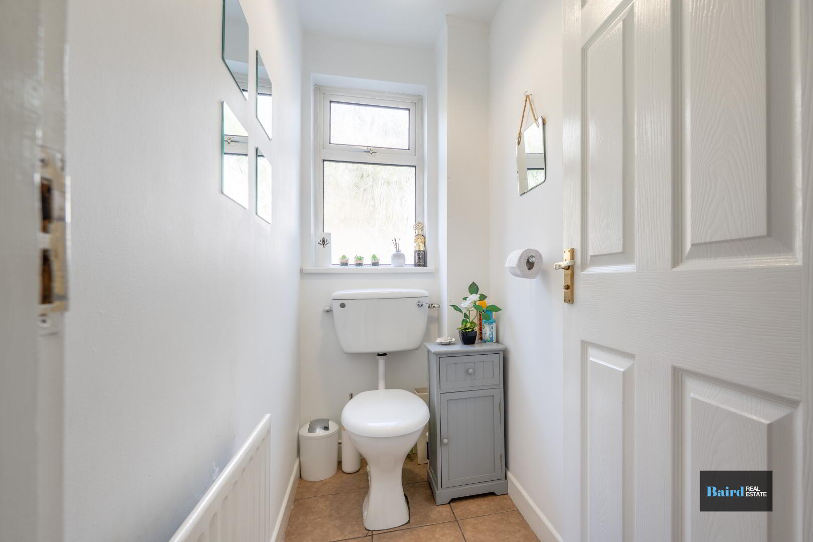 The accommodation comprises three well-proportioned bedrooms, a convenient downstairs WC, and a family bathroom on the first floor. Externally, the property benefits from a garage, gardens to both the front and rear, and off-street parking.