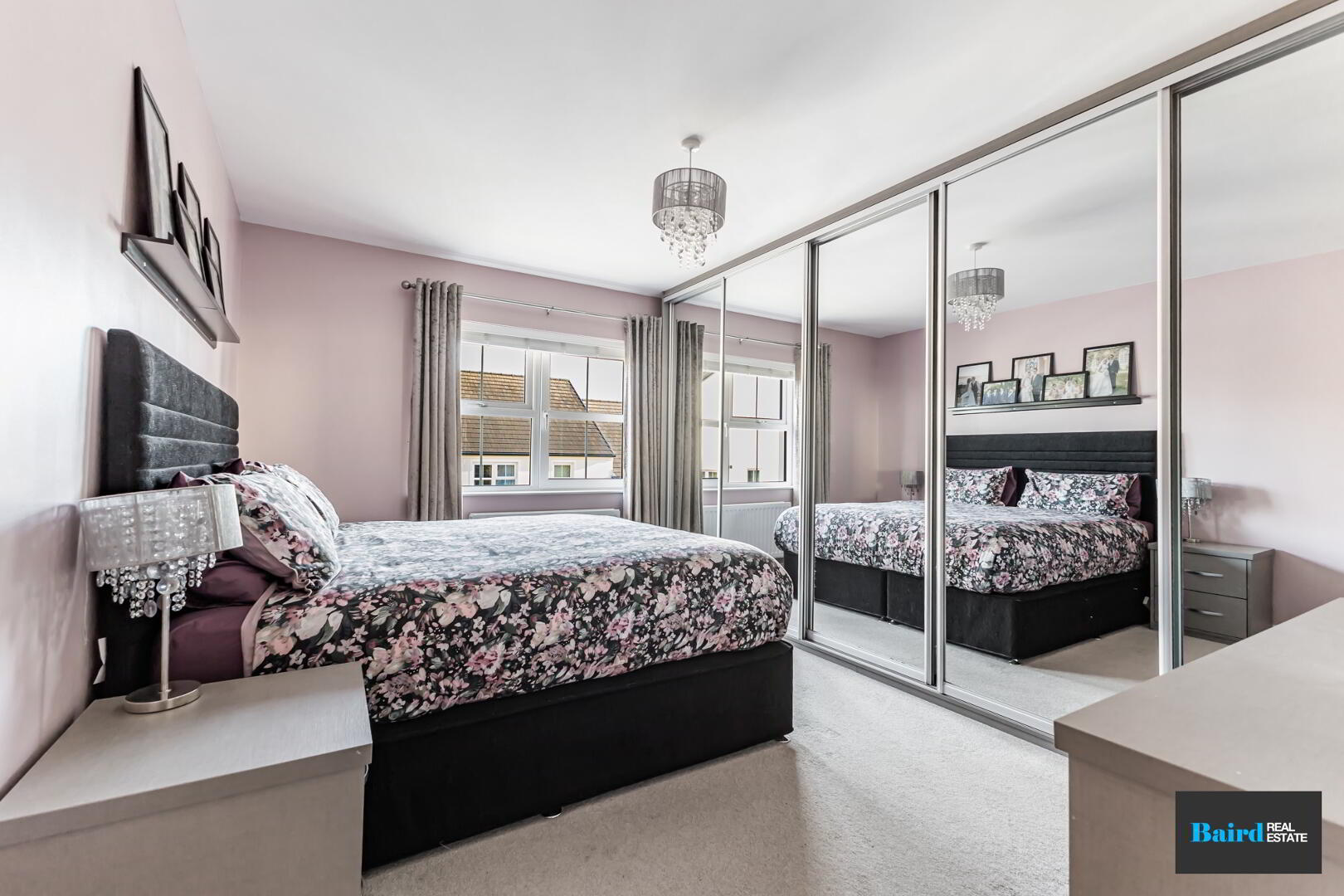 Carpeted, double panel radiator, power points, integrated mirrored slide robes.