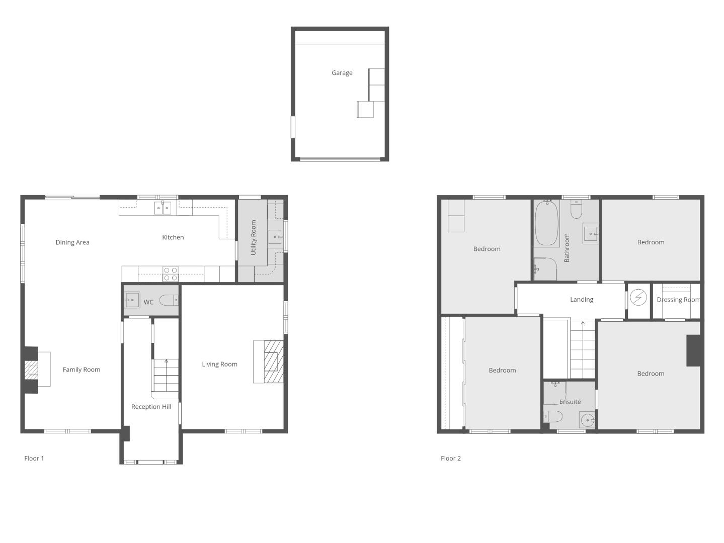 On the ground floor, the home features a welcoming entrance hallway with stylish half-panelled walls, a bright and well-proportioned living room with open fire, and a convenient WC. To the rear lies a stunning open-plan L-shaped kitchen, dining, and living area – a fantastic family and entertaining space – complete with double patio doors opening out to the garden. A separate utility room provides additional practicality.