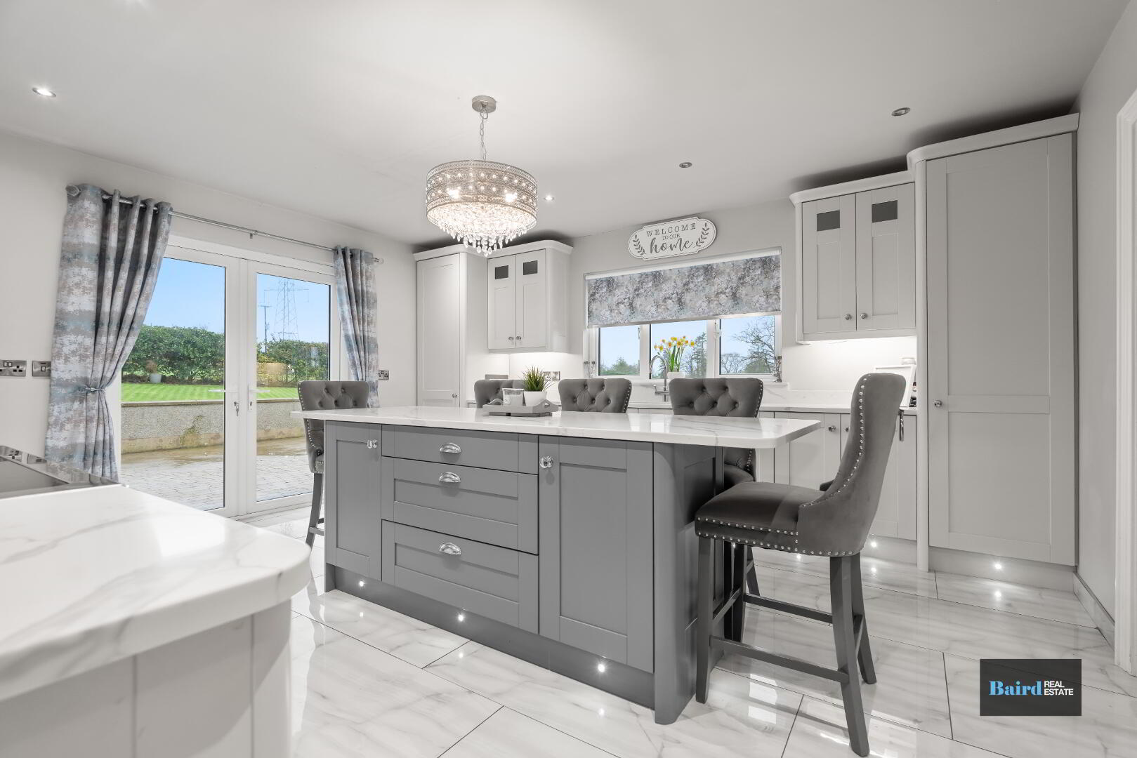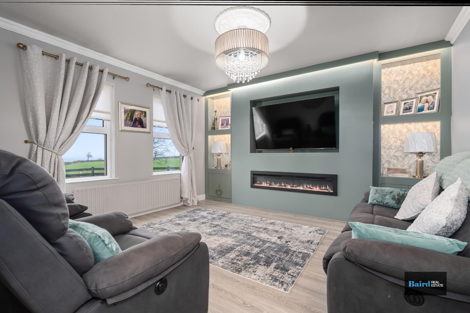 Baird Real Estate are pleased to present this well-appointed four-bedroom detached home, located on the Gortnaskea Road, Stewartstown. Offering generous accommodation throughout and a high standard of finish, this property is ideally suited to family living, with spacious reception rooms, modern fittings, and excellent outdoor space including an adjacent paddock with the entire property extending to a total of 1.25 acres sitting on an elevated site with incredible countryside views.