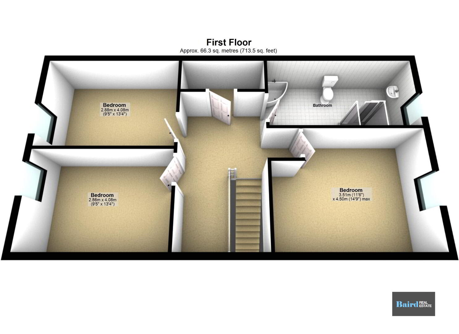 Laminate wooden flooring, double panel radiator, power points and TV point, access to eaves storage (floored), access to attic space and side aspect window.