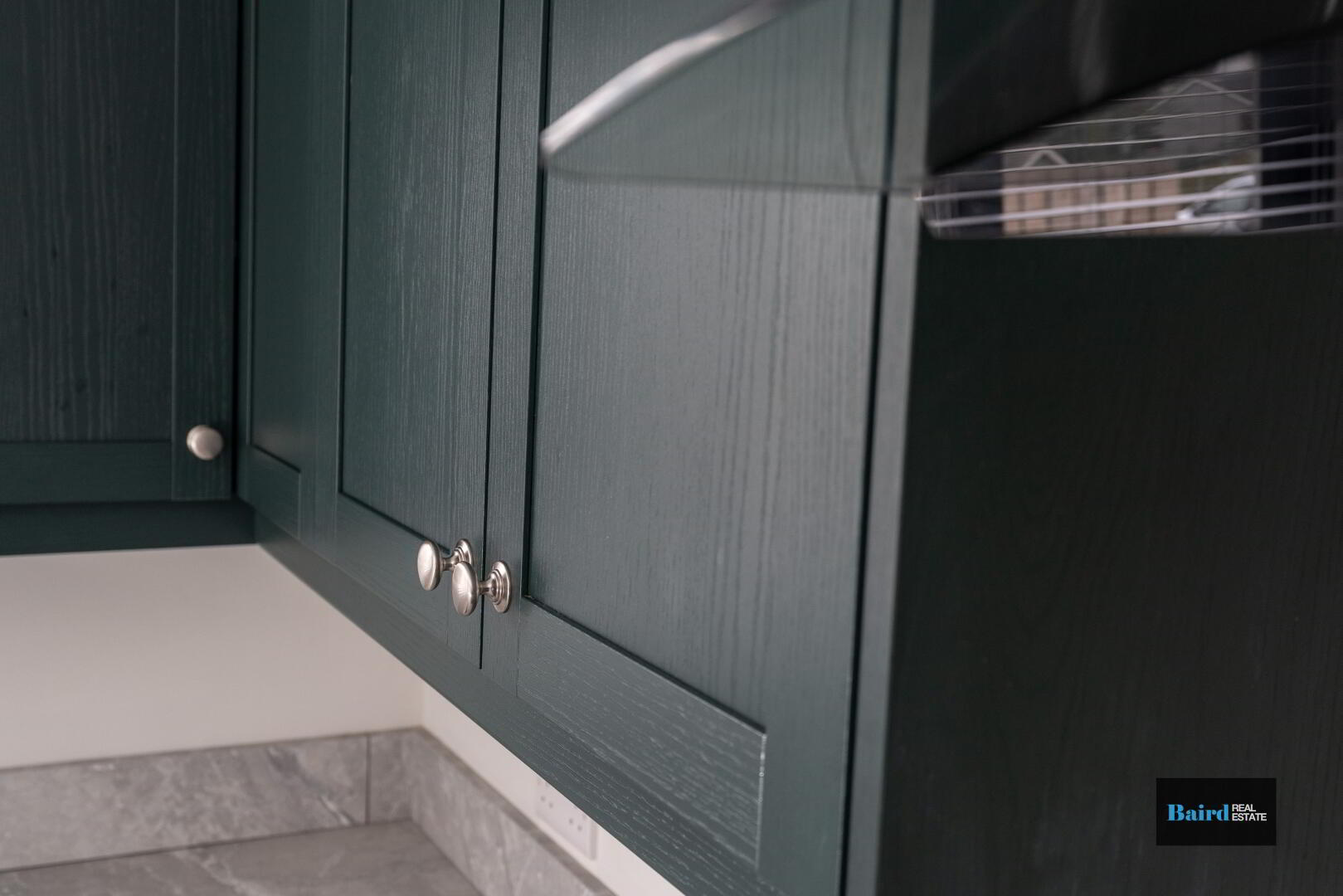 Tiled flooring, high and low level storage units,1 bowl stainless steel sink, Pvc band door, radiator and extractor fan.