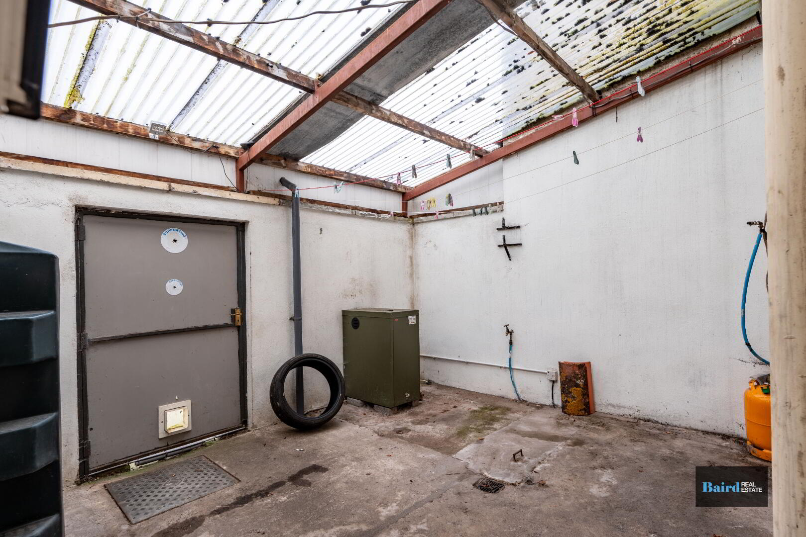 Tank and burner, water tap and outside lighting.