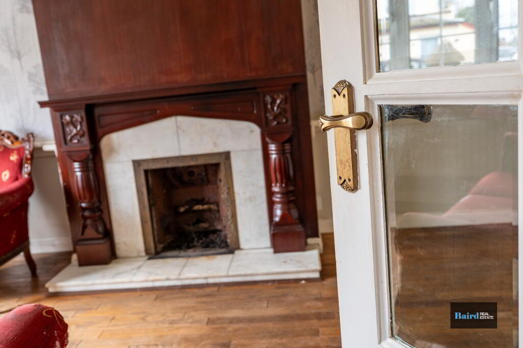 Wooden flooring, power points, TV point, radiator, fireplace with marble hearth and inset and wooden surround.