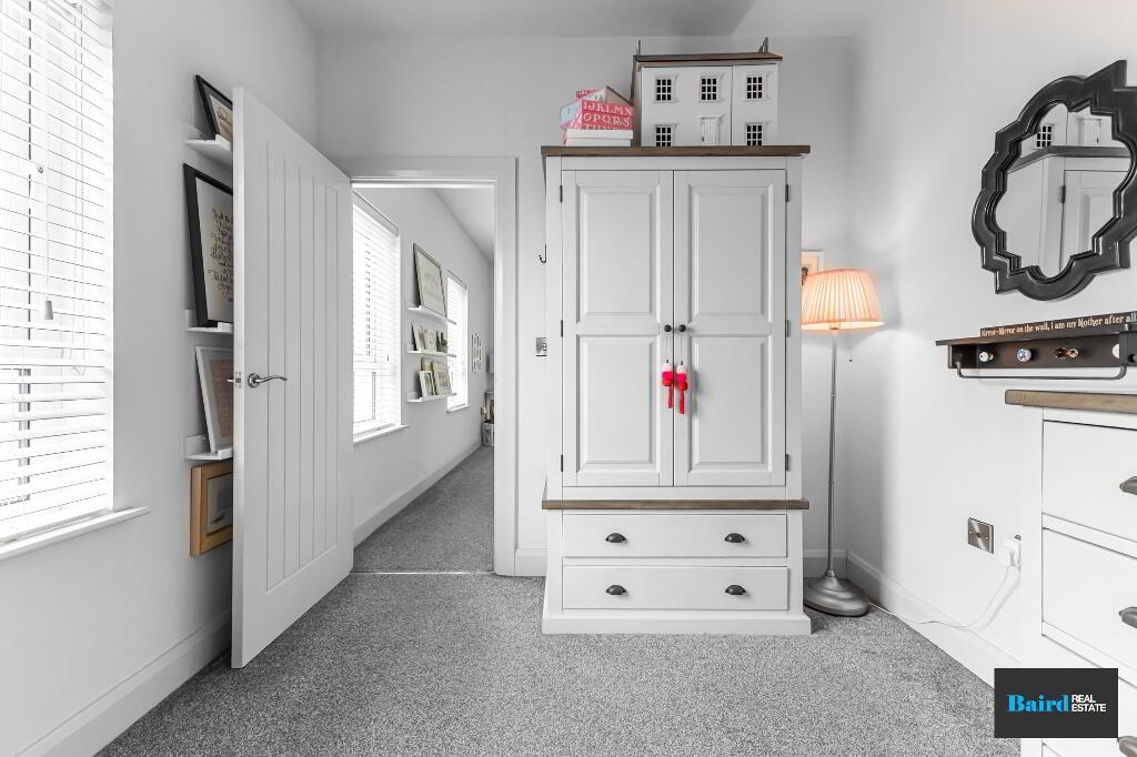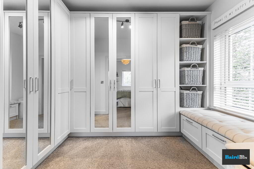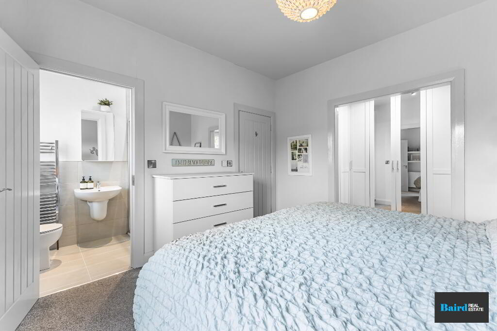 On the first floor there are four bedrooms, with the current owners converting the fourth into a superb dressing room off the main ensuite, though this could easily be reinstated as a bedroom if desired. Alongside the ensuite, there is also a beautifully appointed family bathroom. In addition, the attic space is already floored and provides excellent storage with potential to convert to an additional bedroom (subject to planning permission and building control).