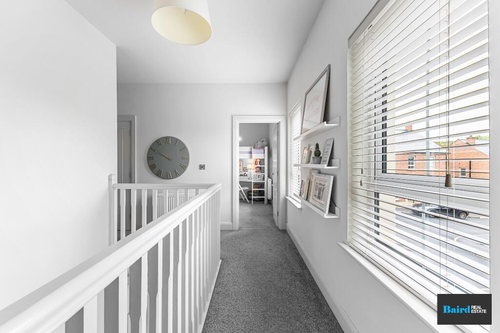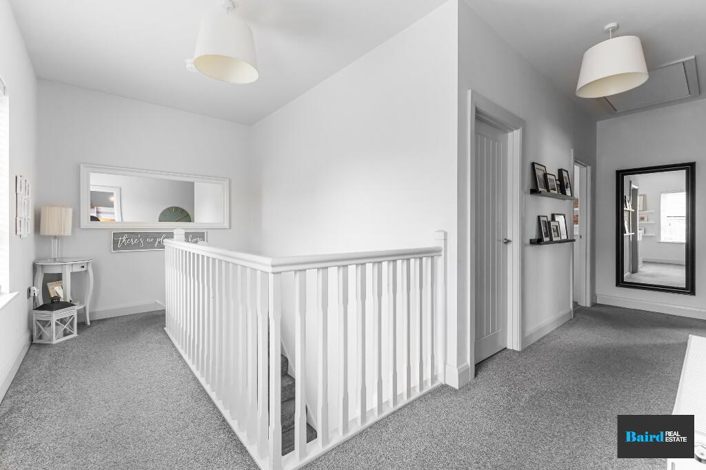 Stairs and landing carpeted, power points, double panel radiator, loft access, hotpress with carpet flooring and shelved, front aspect windows.
