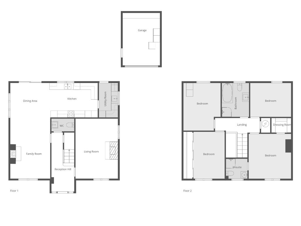 On the ground floor, the home features a welcoming entrance hallway with stylish half-panelled walls, a bright and well-proportioned living room with open fire, and a convenient WC. To the rear lies a stunning open-plan L-shaped kitchen, dining, and living area – a fantastic family and entertaining space – complete with double patio doors opening out to the garden. A separate utility room provides additional practicality.