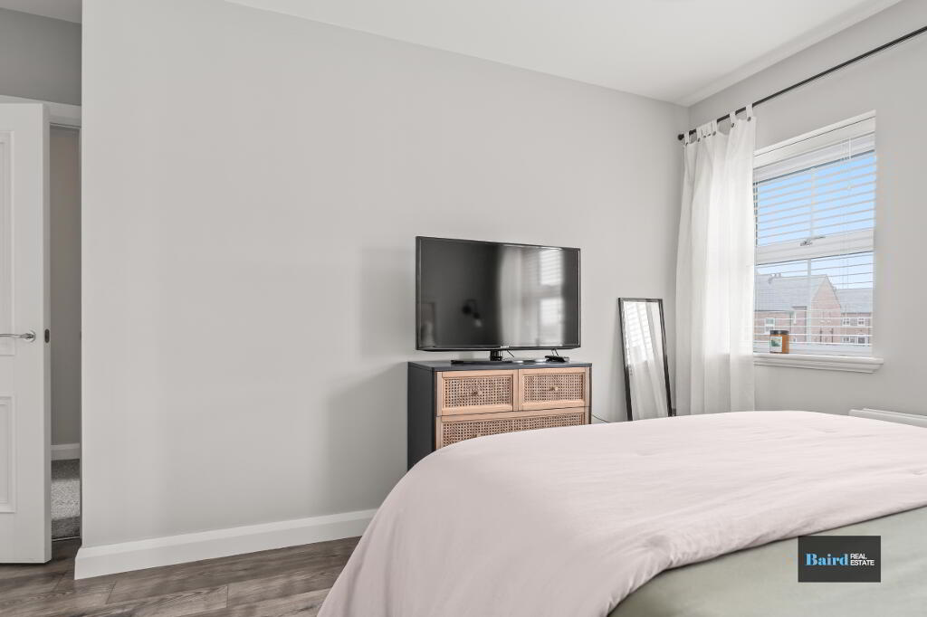 Laminate wooden flooring, double panel radiator, power points and TV point and rear aspect window.