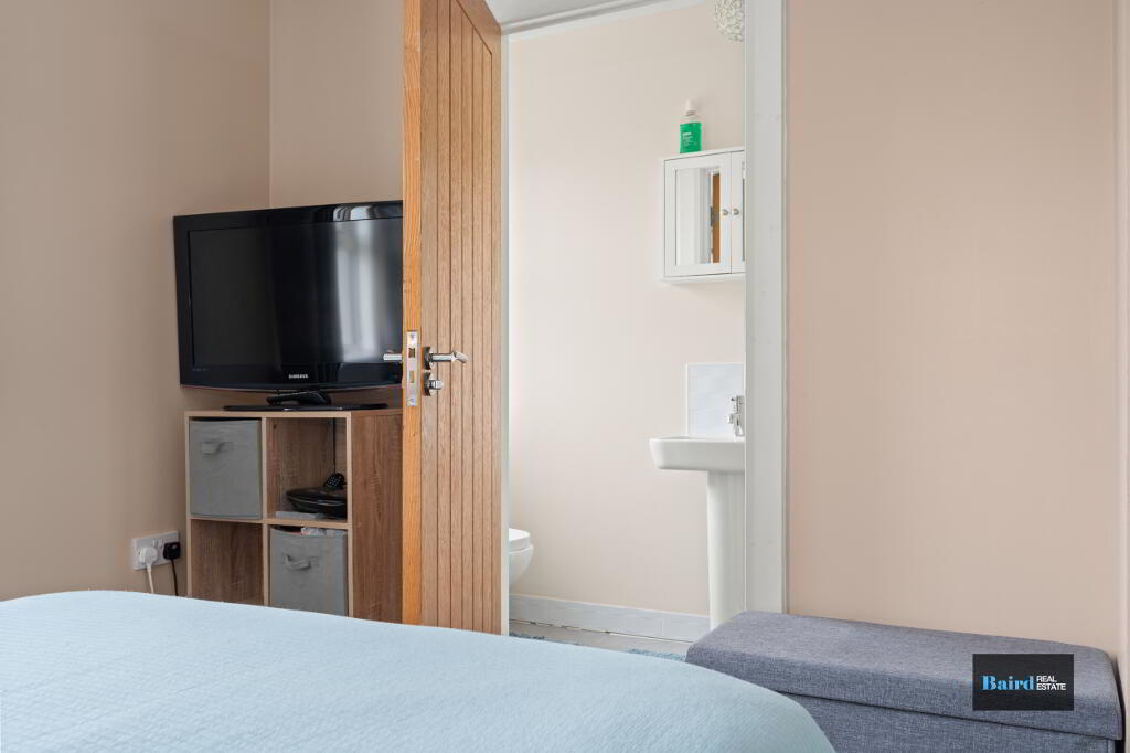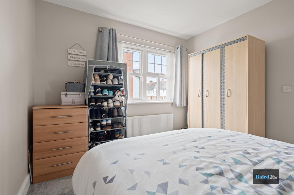 Carpeted, power points, single panel radiator, TV point, built in sliderobes.