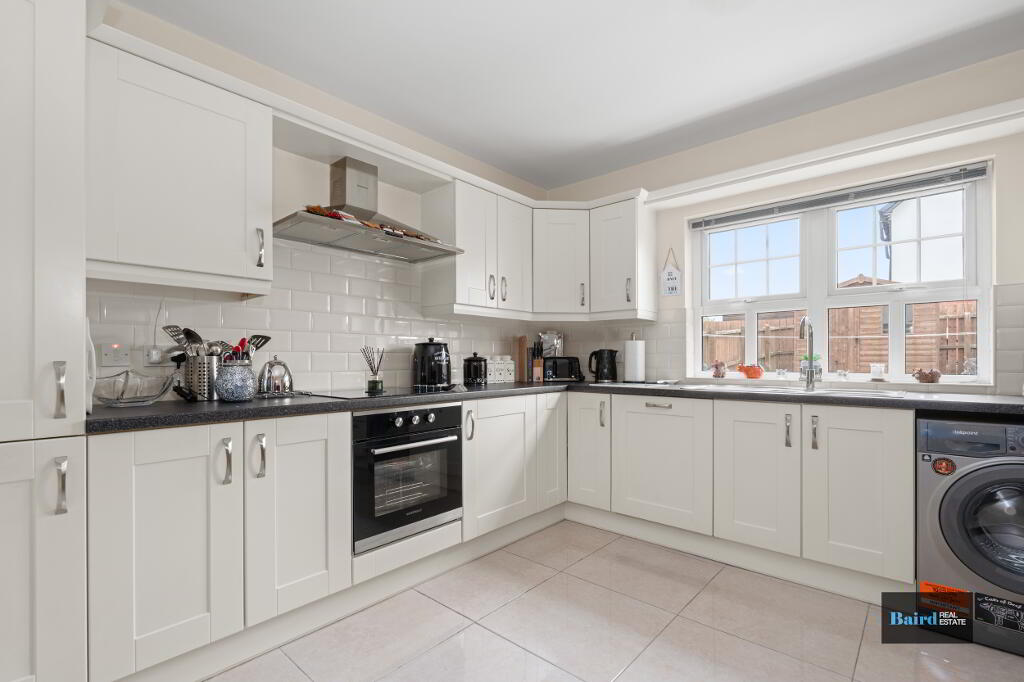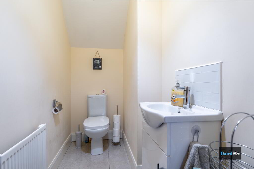 The property is beautifully presented throughout and comprises a welcoming entrance hallway with a convenient downstairs WC, a bright living room, and an open plan kitchen and dining area – ideal for both everyday family life and entertaining.