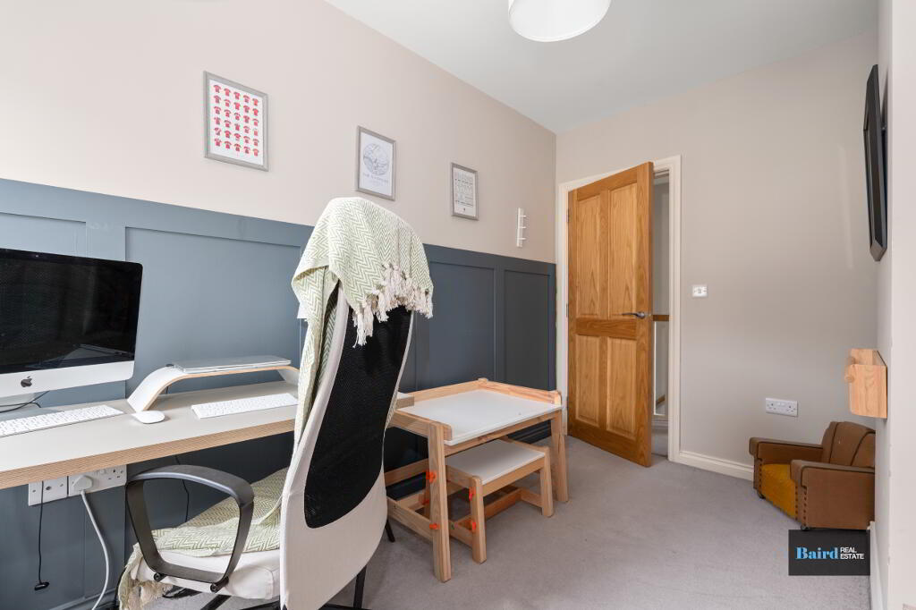 On the first floor, there are three well-proportioned bedrooms, including a master bedroom with ensuite, and a modern family bathroom.
