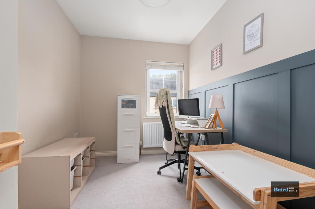 Carpeted, power points, hot press off with shelving and attic space acces which is floored.
