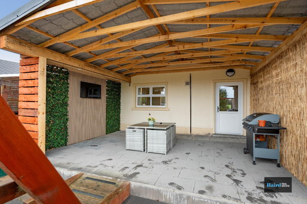 Externally, the home boasts a tarmac driveway providing off-street parking and a spacious enclosed rear garden laid in lawn. A standout feature is the purpose-built covered patio area with decking and power points — the perfect space for outdoor dining and family entertainment all year round.