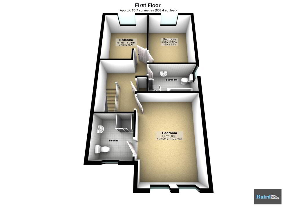 On the first floor, there are three well-proportioned bedrooms including a huge master bedroom with ensuite, along with a modern family bathroom.