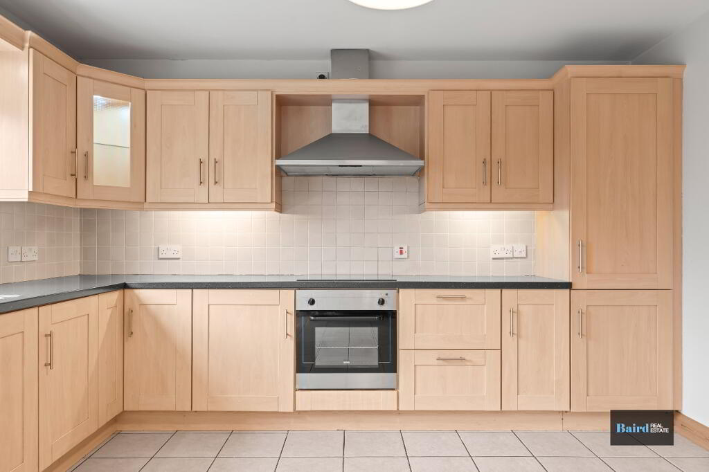 Tiled flooring, double panel radiator, power points, TV points, range of high and low level kitchen storage units; integrated fridge freezer, integrated ignis electric fan oven and four ring hob, extractor fan, integrated dishwasher, 1.5 bowl stainless steel sink, tiled splashback.