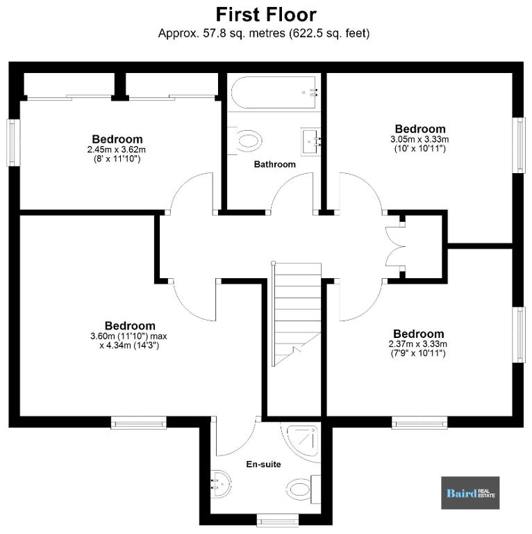 Laminate flooring, double panel radiator, power points and built in mirrored slide robes.