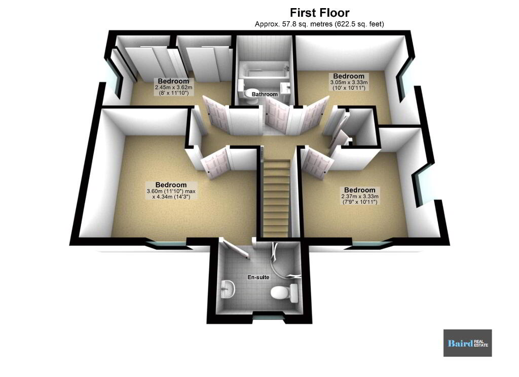 Upstairs, the property features four well-proportioned bedrooms, including a master with ensuite shower room, along with a modern family bathroom.