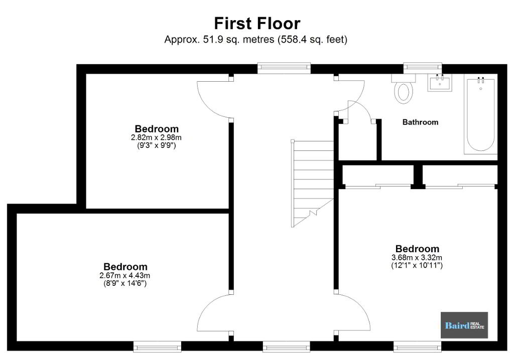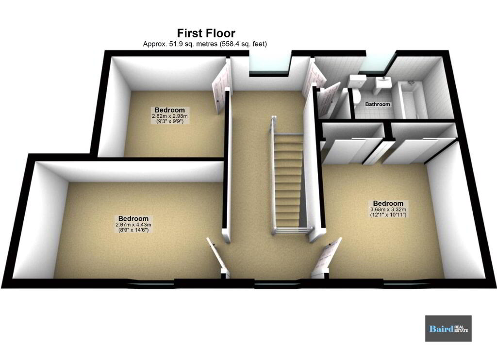 Upstairs, there are three generous bedrooms,, alongside a well-appointed family bathroom.