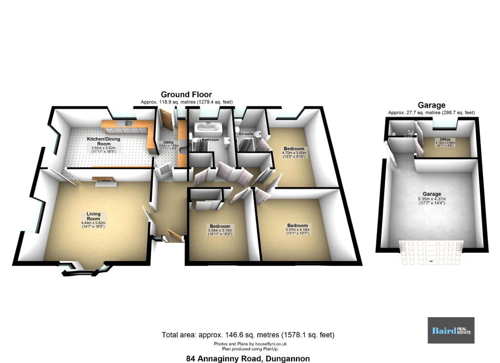The property has been maintained and presented to a superb specification throughout. Accommodation comprises three well-proportioned bedrooms including a master with ensuite, a recently refurbished family bathroom, a spacious living room featuring a fireplace with stove, and a bright open-plan kitchen and dining area with an adjoining utility room.