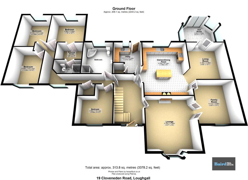 The accommodation extends over two floors and offers excellent flexibility to suit a range of family needs. The ground floor comprises four generous reception areas, an open plan kitchen and dining space, separate utility room, and four bedrooms including one with ensuite shower room, alongside a main family bathroom. On the first floor there are a further two spacious bedrooms and an additional shower room, with one bedroom benefitting from access to a private decked terrace — perfect for enjoying the tranquil setting.