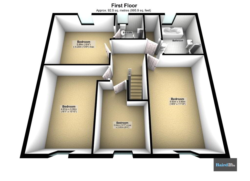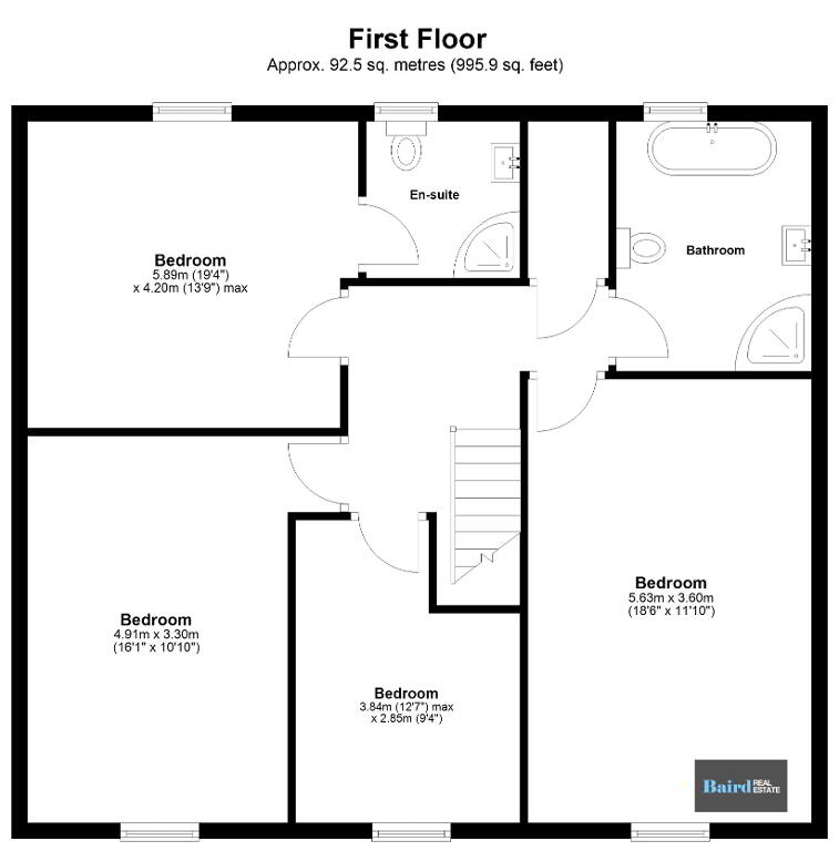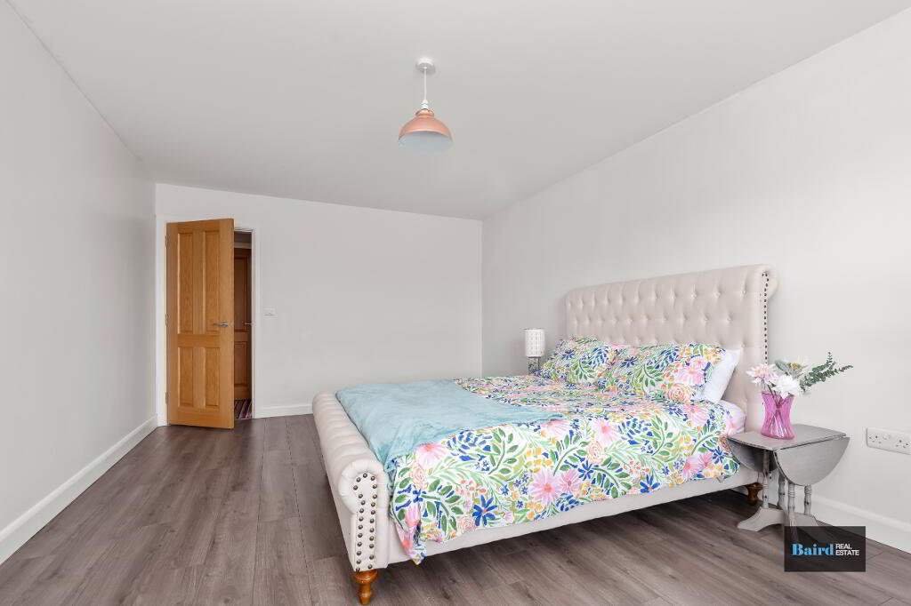 Carpeted, double panel radiator, power points, good size hot press off which is shelved, access to attic space with drop down ladder, drymaster system