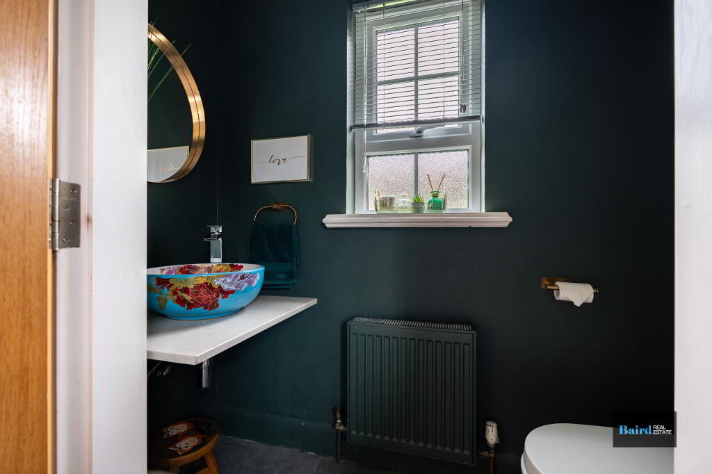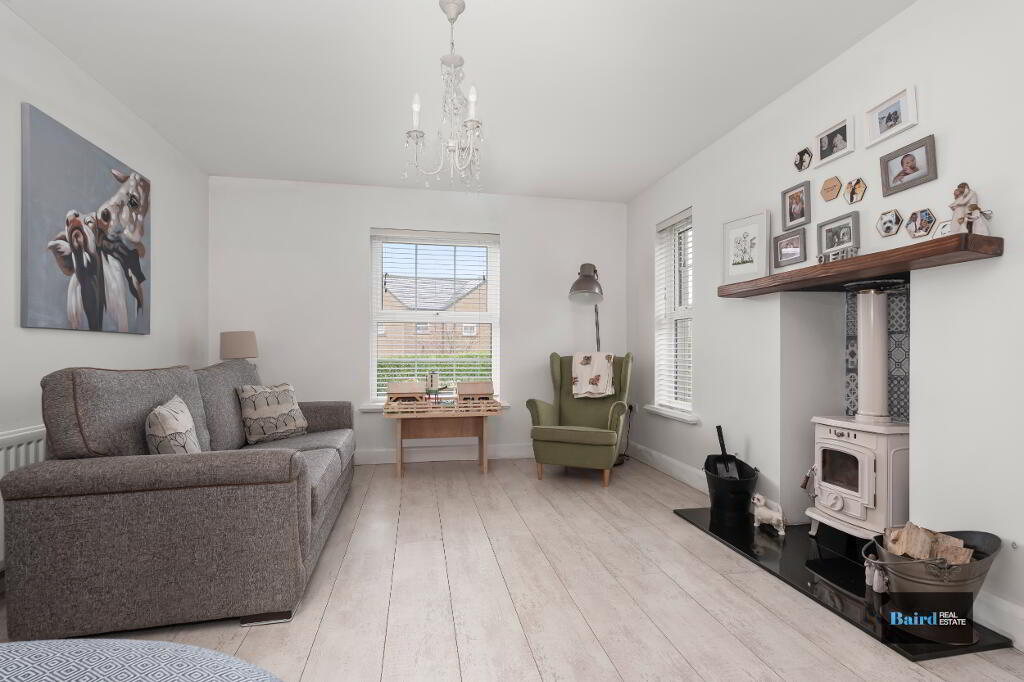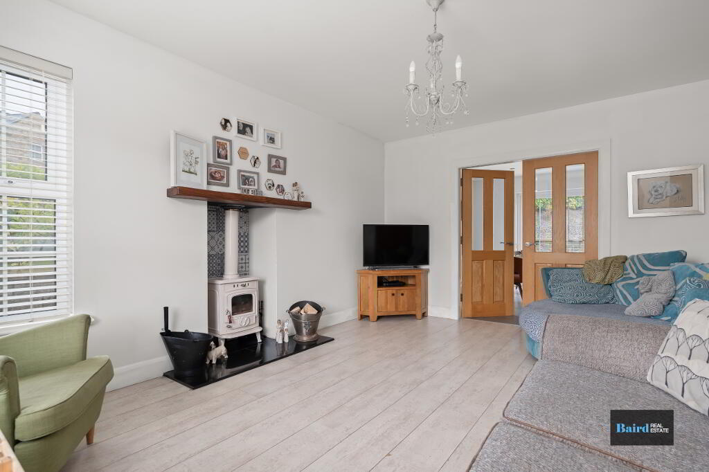 This spacious and beautifully maintained home offers an excellent layout for modern family living. The ground floor comprises two bright reception rooms — one with an open fire and the other featuring a cosy wood-burning stove — providing perfect spaces for relaxing or entertaining. The open-plan kitchen and dining area is generously proportioned and includes a range of integrated appliances, with an adjoining utility room and convenient downstairs WC completing the ground floor accommodation.