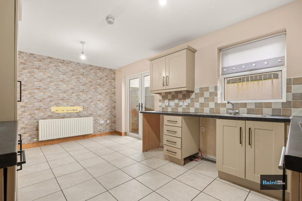 Located just off North Street, this well-presented three bedroom semi-detached property offers comfortable, modern living in a quiet and convenient residential area.The ground floor comprises a bright and spacious living room, two handy storage cupboards, a ground floor WC, and an open-plan kitchen and dining area – perfect for family life and entertaining. Upstairs, there are three well-proportioned bedrooms, a stylish family bathroom, and a generous hot press providing excellent storage.