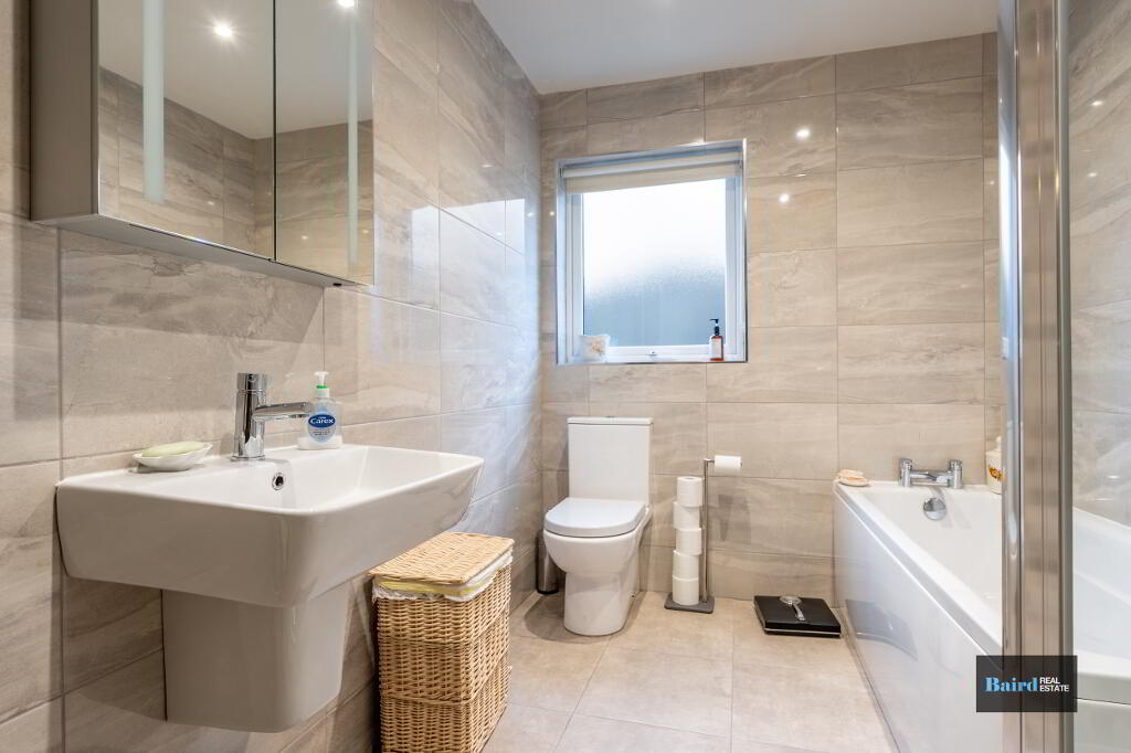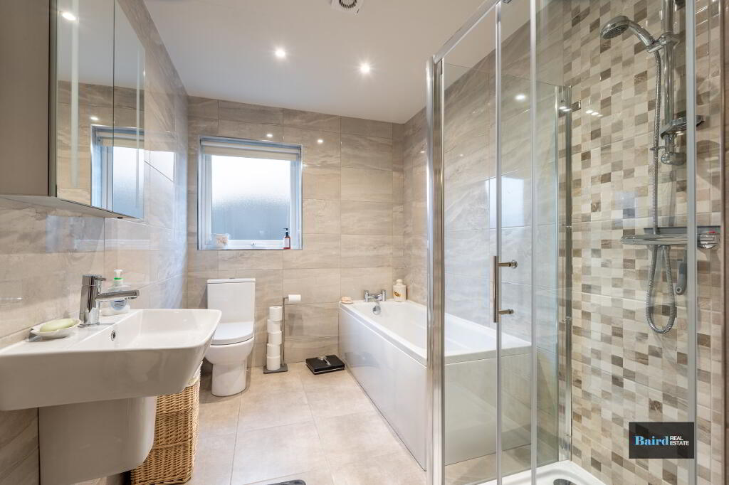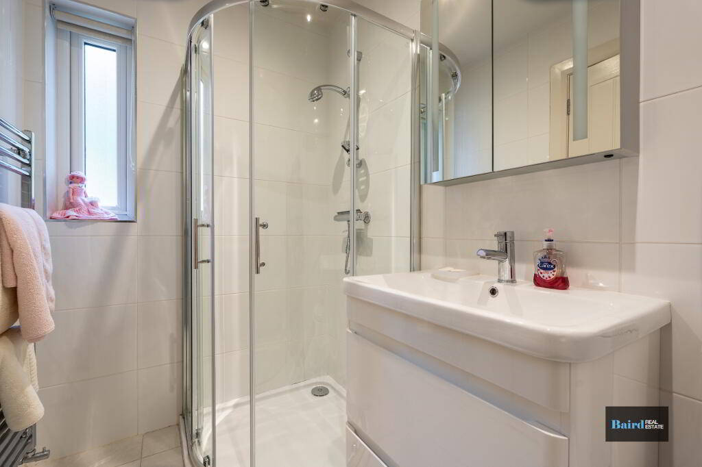There are three well-proportioned bedrooms, including a master bedroom with ensuite shower room, along with a contemporary family bathroom.