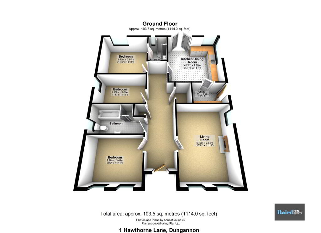 Baird Real Estate are pleased to present 1 Hawthorne Lane, a modern and well-presented detached bungalow located within a small, private development situated just off the Bush Road, Dungannon. Built in recent years, this attractive home offers stylish, low-maintenance living on one level and is ideally suited to first-time buyers, those looking to downsize, or anyone seeking a comfortable and convenient home.