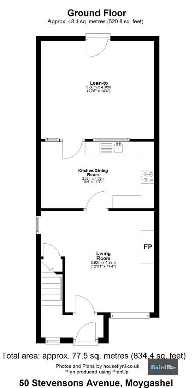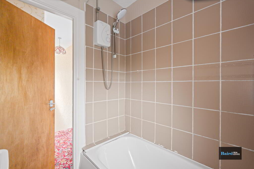 Internally, the accommodation comprises a bright living room, a separate kitchen/diner, and a lean-to area providing useful cover over the rear yard space. On the first floor, there are two well-proportioned bedrooms and a family bathroom.
